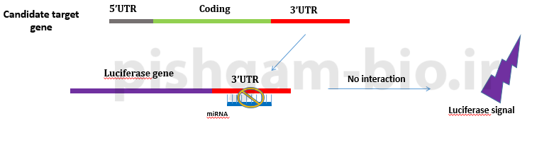 اما در صورتی که بین میکروارنا با ناحیه 3UTR ژن هدف میانکنش ندهد بنابراین تغییری در میزان نور منتشر شده توسط ژن لوسیفراز ایجاد نمی شود.