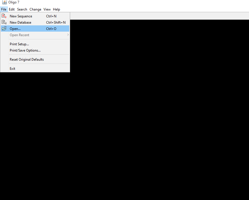شکل 9: باز کردن فایل حاوی توالی درون نرم افزار oligo 7