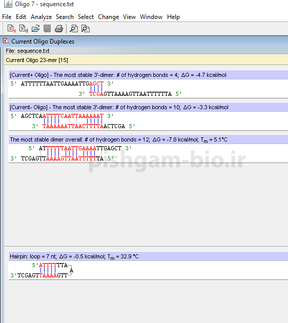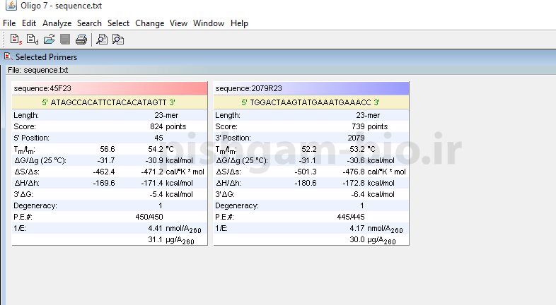 شکل 8: فایل اماده لود به نرم افزار oligo 7