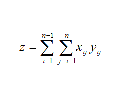 كه در آن xij و yij به ترتيب اجزاي دو ماتريس x, y ميباشند كه به حاصلضرب آنها، محصول هادامارد[1] دو ماتريس گفته ميشود . اگر فواصل دو ماتريس در ارتباط با هم باشند مقدارz از حد متوسط بالاتر ميرود و بالعكس اگر ارتباط منفي بين دو ماتريس باشد يعني مقادير بالاي xij با مقادير پايين yij و برعكس ارتباط داشته باشد، مقدار z كوچك ميشود.